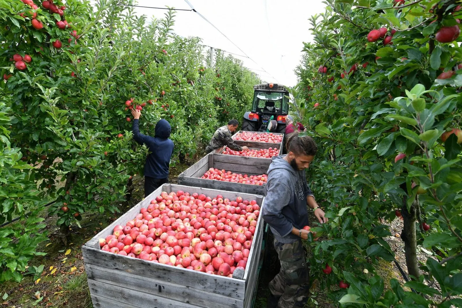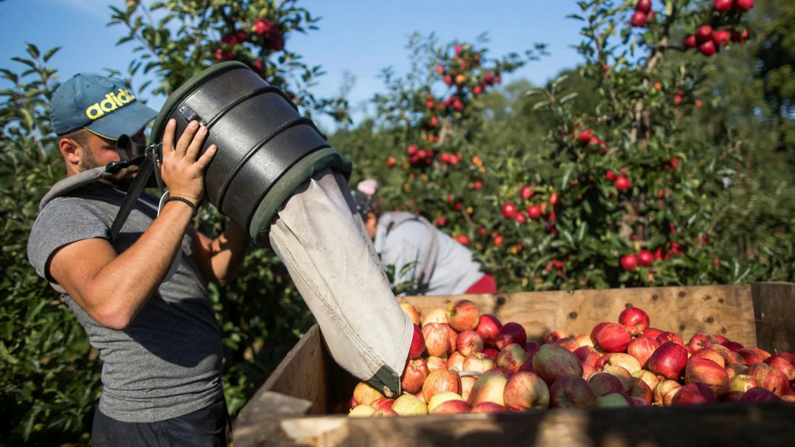 فرز التفاح في البستان